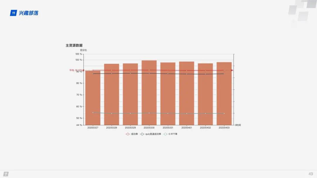 QUIC 建立连接的成功率在 90% 以上,竞速成功率也接近 90%,0 RTT 率在 55% 左右。